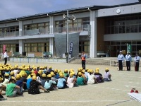 今日は、全校集会で個人の表彰がありました。その後「交通安全指導」もあり、交通安全お兄さんからこれまでお話があったことの、○×クイズ形式での確認がありました。これまでの話の内容を思い出しながら、交通安全についての問題に意欲的に取り組んでいた子ども達でした。