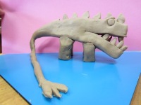 今日は、2年生が図工の時間に「ひみつのグアナコ」という題材で製作をしていました。子ども達は「グアナコ」という言葉から自由に発想し、思い思いのグアナコを粘土でつくっていました。作品を発表する場面では、自分が想像したグアナコについて生き生きと話す中に、子ども達の豊かな感性が光っていました。