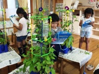 また、先週の授業参観の日に種植えをした1年生の朝顔が、芽を出していました。今朝水やりをしながら、芽が出たことを喜んでいた1年生の子ども達でした。