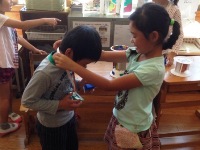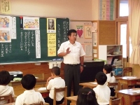 身体計測の後は、宮崎先生と吉開先生から保健指導と栄養指導がありました。風邪の予防について、きちんと手洗い・うがいをすることや、栄養のある食事をバランスよくとることが大切であると分かった子ども達でした。指導が終わった後の休み時間には、先生に教わったことを思い出しながら、手洗い場できちんと手を洗う子ども達の姿がありました。