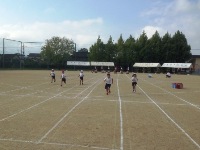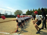 また、運動場では1年生が徒走の練習をしていました。走る前に台の上に乗り、大きな声で自分の名前をはきはきと言うことができていました。その後ピストルが鳴ると、ゴールまで全力で走る子どもたちでした。運動会当日は、1年生をはじめ全児童の頼もしい姿をご覧いただけると思います。