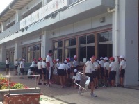 放課後には、今週から高学年の子どもたちが応援団の練習や運動場の草むしり、花飾りづくりなどをしています。
