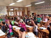 今日は、3年生が国語の時間にローマ字の学習をしていました。子どもたちは、ローマ字表を見ながらアルファベットの字体や読み方を知り、体を動かしながら覚えていました。ローマ字はパソコンのキーボード入力の際に必要となるので、メディアリテラシーの力をつけるためにもしっかりと身に付けてほしいです。