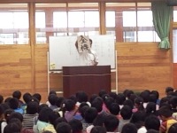 今日は、人権月間の取組の一つで、低学年と高学年に分かれて、人権に関するDVDを鑑賞しました。低学年は、「名前、それは燃える生命」という映画を鑑賞しました。人はそれぞれ1つずつ名前をもっていて、その名前を無下にすることなく、互いを尊重しあうことの大切さを考えることができました。高学年は「ヒーロー」という映画を鑑賞し、身の回りの人権問題に対して、他人事にするのではなく、主体的に行動することの大切さについて考えました。