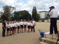 訓練の後には、多良木警察署の方に講話をいただきました。不審者はいつ、どこで、どのように現れるか分からないので、いかなる場合も冷静に行動することの大切さを理解できた子ども達でした。