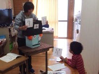 子ども達は、おもちゃの遊び方をビデオレターで紹介することに決め、今日はその準備をしていました。つくっていたのは「妖怪の森」というおもちゃで、子ども達が丁寧に描いた妖怪を磁石のついた竿で釣り上げるものでした。球磨支援学校の友達に喜んでもらえるといいですね。