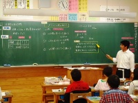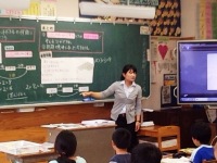 また、5時間目には3年1組で山下先生による研究授業がありました。算数の「何倍でしょう」という学習で、子どもたちはかけ算の変量の関係に目を向け、意欲的に問題に取り組んでいました。