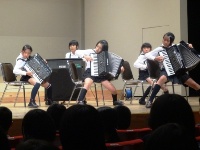 今日は、児童集会で器楽部の発表があり、明日の器楽合奏コンクールで演奏する曲を披露してくれました。アコーディオンの四重奏で、体全体でリズムをとりながらの迫力ある演奏でした。明日のコンクールでも、これまでの練習の成果を発揮して、頑張ってほしいです。