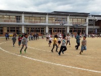今週から、6年生が他の学年の子ども達と遊ぶ「6年生と遊ぼう」という企画が、昼休みに行われています。今日は、6年生は利き腕とは反対の手で投げたり、コートを狭くしたりするなどのハンデをつけて、1年生の子ども達とドッジボールをして遊んでいました。1年生の子ども達は、体の大きな6年生が相手でも憶することなく健闘し、ゲームはとても盛り上がっていました。6年生の子ども達は、この企画を通して他学年の子ども達と楽しくふれあい、小学校生活の良い思い出をつくることができているようです。