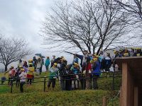 運動会全体練習(応援合戦)、かかし回収(5年生)