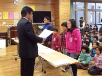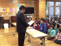 今日から3学期が始まり、始業式が行われました。児童の発表では、冬休みの思い出や3学期の抱負について、1,3,5年生とわかば3学級の児童が代表で発表しました。発表には、年越しや正月を楽しく過ごし、思い出に残る冬休みを送れたことや、2学期の反省をふまえた3学期の目標や抱負などがありました。どの発表も、堂々とした立派な発表でした。