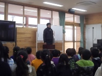 表彰の後は、中山先生から「多良木っ子4つのおこない」の一つである、挨拶についての話がありました。友だちや先生、地域の人などに会った時には、自分からさわやかに挨拶することの大切さを改めて確認した子ども達でした。