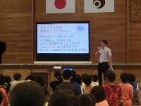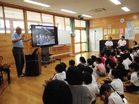 朝の時間に、多良木プレカット協同組合の田爪さんを講師にお迎えして「キャリア集会」を行いました。 田爪さんから、多良木プレカット工場での仕事内容についてわかりやすく説明をしていただき、子どもたちは「多良木町に、日本一の工場がある。」ということを、改めて学ぶことができました。