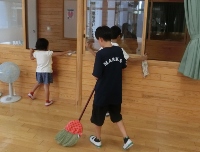 普段とは違う掃除場所でいろいろ戸惑うところもあったかと思いますが、上級生からアドバイスを受け、黙々と真剣に取り組む姿が見られました。