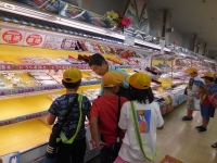 スーパーマーケットの見学では、事前に準備しておいた質問に対して、店長さんからとてもわかりやすく解説をいただき、子どもたちは熱心にメモをとっていました。