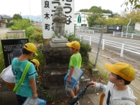 3年生は、先日、社会科見学で「スーパーマーケットの工夫」を探しに、今日は、総合的な学習の時間で「多良木町のお宝を紹介しよう」をテーマに町内に設置してある「えびす像」を調べるために校外学習を行いました。