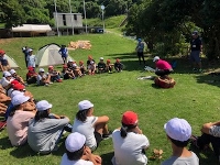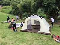 所員の方から説明を受けた後、各班ごとに協力し合いながらテントをたてました。どの班も上手にテント設営ができました。