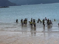 午後からの活動は、みんなが楽しみにしていたマリン活動でした。波の状態により活動ができなくなるので、とても心配していましたが、無事に出艇することができました。