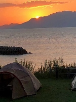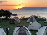 キャンプ場から見える夕日に染まる芦北の海は、とてもきれいでした。