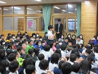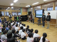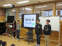 多良木っ子タイム(集会)の時間に、今年度の南幌町との姉妹町児童交流学習事業の報告会をしました。毎年両町から6年生10名が互いの町を訪問し合い、交流を深めています。今年度、多良木小の代表となった4名の児童が、夏に多良木町に南幌町の児童が訪れた際の様子と2月上旬南幌町へ訪問した様子について、スライドを使って報告をしました。児童交流は今年度で7回目となるそうです。今後も交流事業が継続し、ますます互いの絆を深める架け橋となることを期待しています。