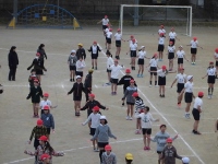 卒業まで残り10日余りとなった今日。6年生が42.195㎞の世界記録2時間2分57秒に挑戦しました。1人50mずつ走り、全員でバトンをつなぎ、リレーをして挑みました。世界記録を超えるためには、平均8.6秒で走らなければならず、この日のために自分たちで計画を立て、練習をしてきました。風が強く市房山が雪化粧するような気温でしたが、ちょうど疲れが出始めた1時間あたりに、日が差し、子どもたちの心を奮い立たせてくれました。見事、世界記録を大幅に塗り替える、2時間1分30秒の記録でゴールしました。
