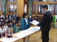 最後まで一人一人があきらめず、走りぬいた成果です。一人では難しいことも仲間がいれば、達成できる!卒業して中学校へ行っても今回の経験を糧にがんばってほしいです。