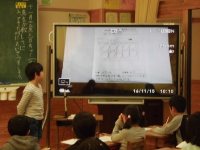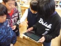 今日は、5年生がタブレットパソコンを使った学習に初挑戦しました。内容は、総合的な学習の時間のまとめをタブレットパソコンで入力し、友達と紹介し合うものです。学習を通して、子どもたちは、持ち運びがしやすく、見てほしい所を焦点化しやすいという良さに気づくことができました。学習意欲がさらに高まったようでした。今後も効果的なICT活用を進めていきたいです。