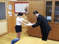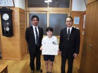 本日、人吉球磨地区租税教育推進協議会が主催する「税についての作品(習字)」に出品した作品が「人吉球磨地区租税教育推進協議会会長賞」を受け、6年生の児童が表彰してもらいました。人吉税務署の署長様に来ていただき、直接表彰状の授与をしていただきました。一生懸命書いた作品が、このように評価されたということで、表彰された児童もとても嬉しそうでした。これを大きな自信にして、これから先も色々なことに頑張っていってほしいと思います。やったね、多良木っ子!
