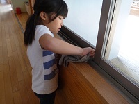 事前に汚れやすい場所や、ほこりがたまりやすい場所を調査し、掃除場所を決めていた子どもたちは、一斉に活動に取りかかりました。約20分間、黙々と掃除に取り組む子どもたちの目は、真剣そのものでした。