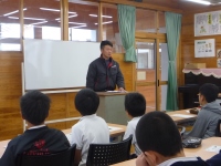 5年生の社会科で学習した「自動車をつくる工業」のまとめとして、自動車関係の仕事に携わっておられる、中川さんをお招きしてお話を伺いました。