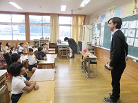 今日はALTのルーシー先生との授業日でした。授業では、「What's this?」を使ったスリーヒントクイズを行い、子どもたちは意欲的に英語に慣れ親しむことができました。