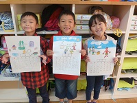 1年生は、「日づけとよう日」の学習のあと、カレンダー作りに挑戦しました。来年の1月から3月までの分ですが、その月に合った思い思いの絵を描いて、完成させました。家に持って帰って飾ります。「日づけとよう日」のまとめの学習がしっかりできました。