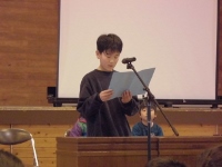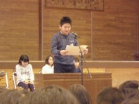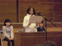 2学期の終業式が行われました。2,4,6年生、わかば3学級の子ども達の代表発表では、2学期に頑張ったことと、冬休みや3学期に向けての抱負が述べられました。多くの行事に目標をもって取り組んだ子ども達の成長が感じられる発表でした。冬休みも健康や安全に気をつけて過ごし、元気に3学期を迎えてほしいと思います。