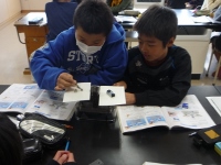 5年生が1・2組合同で理科の授業を行うのも今回で3回目。今日は、食塩やミョウバンが水に溶ける量には限界があるのか実験で確かめました。電子てんびんを使って食塩やミョウバンの重さを量りながら実験に取り組む子どもたちの表情は真剣そのもの。子どもたちからは、「次の実験も楽しみです。」という声が聞かれました。やる気満々の5年生です。