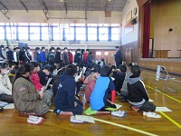 6年生が、来年度入学する多良木中学校の説明会に行きました。中学校の先生方に、校舎や授業の様子を見学させてもらいました。3階建ての校舎や壁に掛けられた美術の作品に感動している様子でした。「英語と理科の授業が面白そうだった。」と話していました。体育館に戻り、部活動の紹介映像を見たり、学校の様子について話していただいたりしました。積極的に質問して、中学校生活に意欲的な姿を見せてくれました。