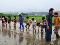 今日は、5年生が田植えを行いました。地域の方々に御協力いただき、苗の植え方を教わった後、子ども達は1列に並んで1本ずつ丁寧に植えていきました。子ども達は田植えの体験を通してその大変さを実感し、農家の方々の苦労を理解することができたようです。