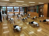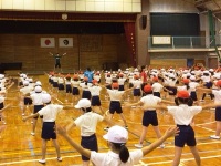 今日は、体力アップタイムがありました。雨天で運動場が使えなかったため、いくつかの場所に分かれて活動を行いました。体育館では、1~3年生がラジオ体操の練習をしていました。1年生の子ども達も動きを覚え、上手になってきています。多目的室では、6年生が筋力トレーニングをしていました。それぞれの場所で、体力を高める活動に精一杯取り組んでいた子ども達でした。