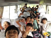 大野温泉センターで休憩を取り、1人も酔うことなく、予定通りあしきた少年自然の家に到着しました。