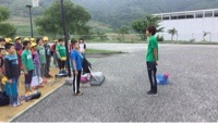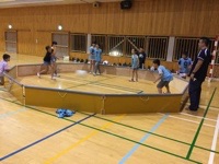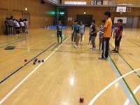 夜の活動のナイトゲームはあいにくの雨でニュースポーツになりました。