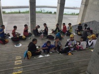 その後のお弁当は雨が降ってきてしまいましたが、屋根のある階段でみんなで食べました。
