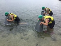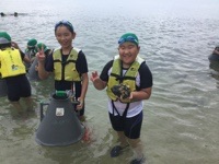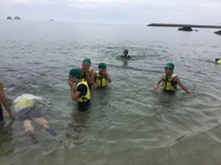 午後からの活動で、マリン活動をしました。ライフジャケットの着方や、カヌーのパドルの使い方、磯活動の面白さなどを説明していただき、活動を行いました。
