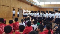 今日は、応援団の結団式がありました。赤団、白団それぞれに分かれ、応援リーダーの自己紹介とスローガンの発表がありました。赤団のスローガンは「電光石火」、白団は「一心不乱」です。これから朝の活動の時間に応援練習などが始まります。皆で力を合わせ、優勝を目指して頑張ってほしいと思います。頑張れ!多良木っ子!!