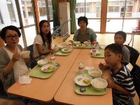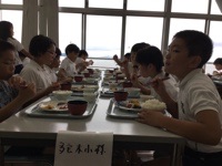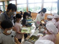 今日は、1年生の親子給食がありました。1年生の子ども達はこの時間をとても楽しみにしていて、給食の準備が上手にできるようになった姿を見てもらおうと張り切っていました。その後、お家の人と一緒に、嬉しそうに給食を食べていた子ども達でした。