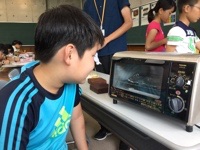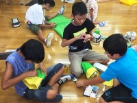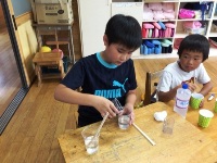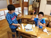 2日目、午後からの活動プラホビー作りでした。皆、思い思いの絵を描いていました。プラ版がトースターで縮んでいく様子を楽しんでいました。