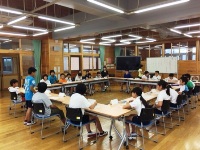 あしきた青少年の家に到着し入所式を行いました。所員の方の話の中であしきた青少年の家でつけてほしい力「共感・交流・向上」について説明をされました。この二日間、しっかりと意識して生活してくれる事と思います。