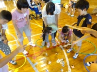 予定していたガガや、シャッフルボード、ペタンクといったニュースポーツの他に豆つかみや、フープくぐり、新聞リレーなどのミニゲームもあり、とても熱中していました。