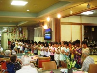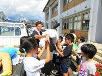 今日は、4年生があずみ野へ行き、入所者の方々との交流をしました。はじめに、子ども達が事前に話し合いをして用意してきたゲームをして、入所者の方々と楽しみました。魚釣りやキャッチボールなどをしながら、にぎやかに交流していた子ども達でした。その後、歌とリコーダーの演奏を披露しました。入所者の方々と、楽しい時間を過ごすことができた子ども達でした。