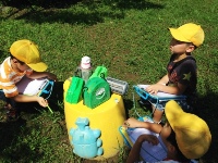 また、今日はクラブ活動もありました。今回は、ものづくりクラブと屋外球技クラブの活動を紹介します。ものづくりクラブは、洗濯のりを使ってスライムづくりをしていました。屋外球技クラブは、プールで水球をしていました。学年の違う人との活動を楽しんでいた子ども達でした。