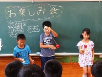 今日は、2,3,4年生がお楽しみ会を開いていました。それぞれの教室では、歌を歌ったり、読み聞かせや竹馬の発表があったりして、とても盛り上がっていました。夏休みに入る前に、クラスの友達との楽しい思い出をつくることができたようです。