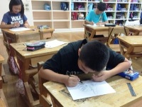 今日は5時間目に、4年1組で山下先生による研究授業がありました。ひし形を対角線で切ったときにできるのはどのような三角形か、ひし形の性質をもとに考える学習でした。子ども達は自分の考えをしっかりとノートに書き、意欲的にグループの友達と意見を交流することができていました。